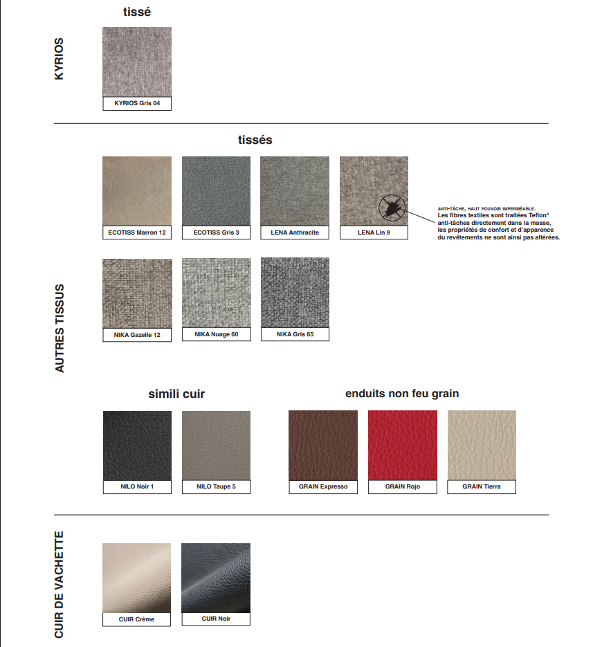 • Revêtements cuir, enduit, tissus, enduit non feu (M1)