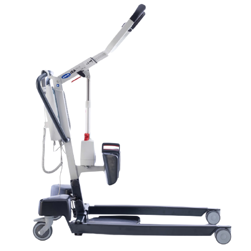 Cigogne - Invacare Prévue pour un usage intensif, cette cigogne est orientée institution/collectivité. Elle est adaptée aux patients à forte corpulence, la limite de poids étant fixée à 210kg (bariatrique). Elle est équipée d'un ralentisseur au démarrage et à l'arrivée. Dimensions :